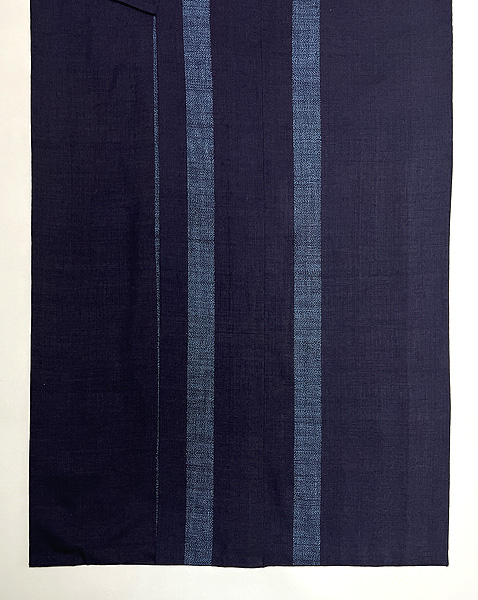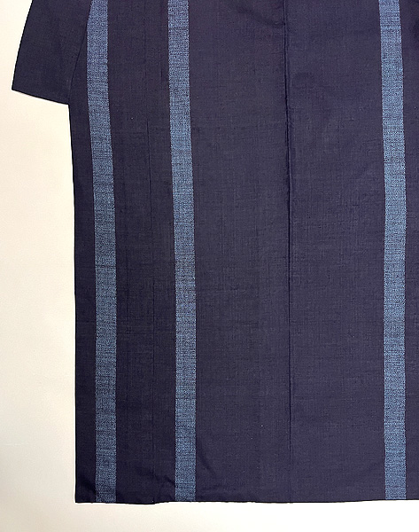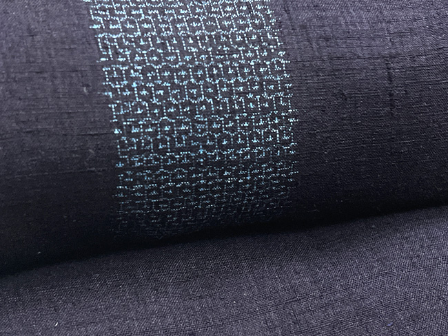 100亀甲で織り出された一本の縞が縦に凛々しく走って、抑制の効いた気品に満ちた紬となっています。 軽くて暖かい真綿の感触を、この秋こそ味わって頂きたいです。