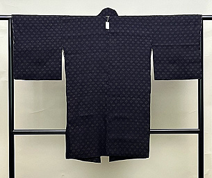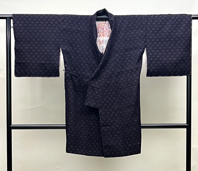 銭文結城縮の道中着 着物23-12-30 お仕立て直し ご売約済 身丈:2尺8寸(約106.4cm) 裄:1尺8寸4分(約69.9cm) 袖丈:1尺3寸(約49.4cm) 袖巾:9寸2分(約35cm)