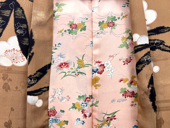 笹に梅文の長羽織 正面 笹に梅文の長羽織 羽裏 笹に梅文の長羽織 質感・風合