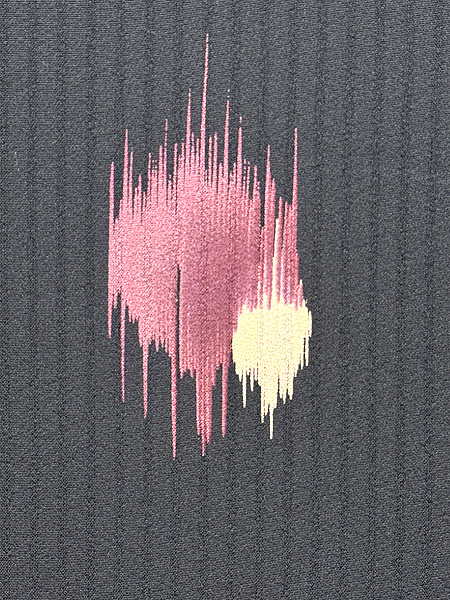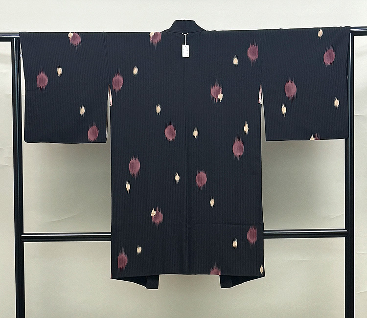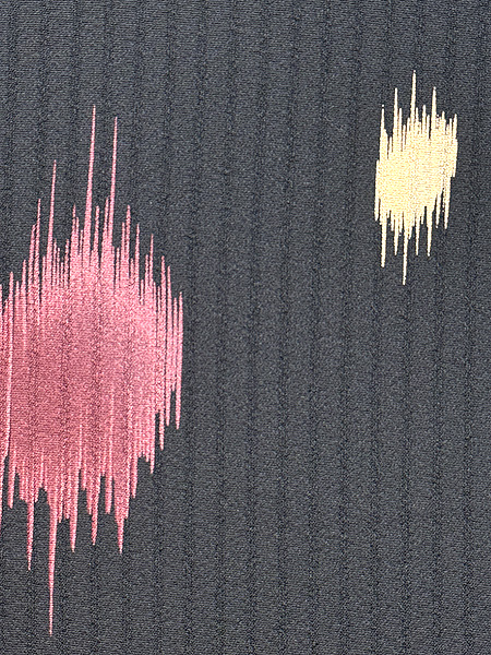 しっとりと落ち着く着用感のある現代物です。 2色のドットが絣足風に長く伸びているのがご愛嬌です。