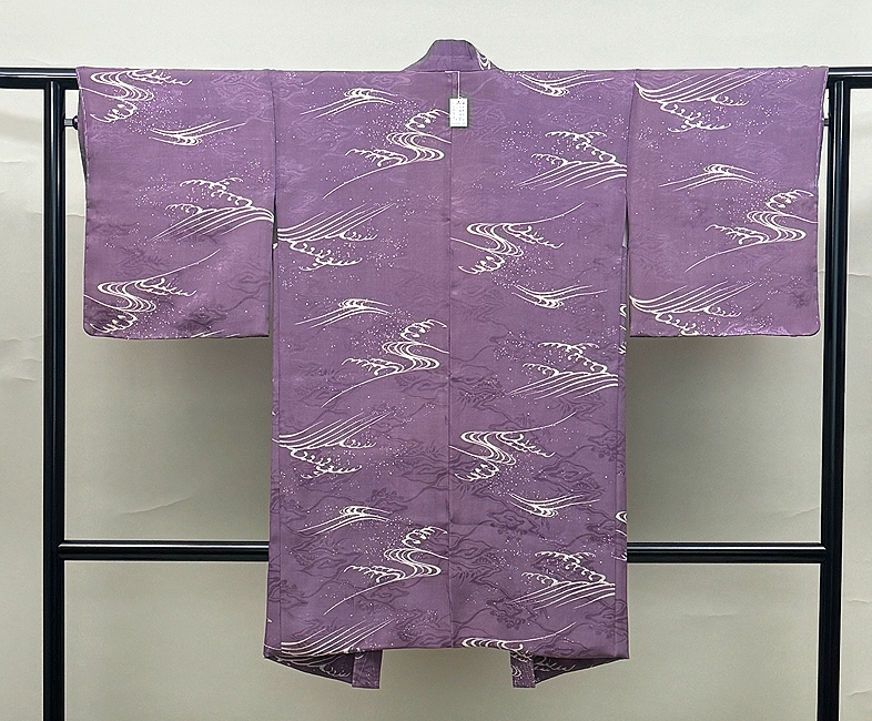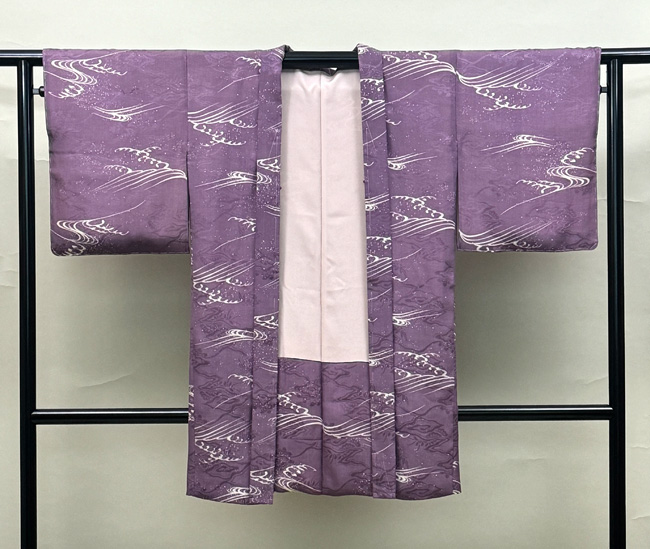 地紋起こしの波が光琳風で、しぶきの中から物語りでも生まれてきそうな、静かな羽織です。 きものからのお仕立て直しです。