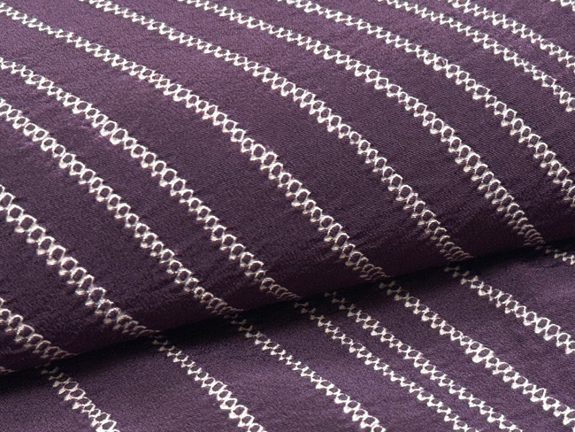 全体に流れるように細かな絞りの文様をほどこした小紋。 温かみのある紫の生地はほのかに光沢があり、ふっくらとしなやかで、体を優しく包んでくれます。 帯合わせによって華やかにも粋にもなる一枚です。