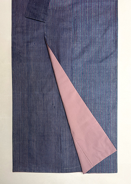 明治期の綿唐山2種が組み合わさり、袷になっています。 縦糸双糸の反物、共に幅がないので、裄は大きくないですが、しっとりと重く粘りのある糸質の魅力は素晴らしいです。