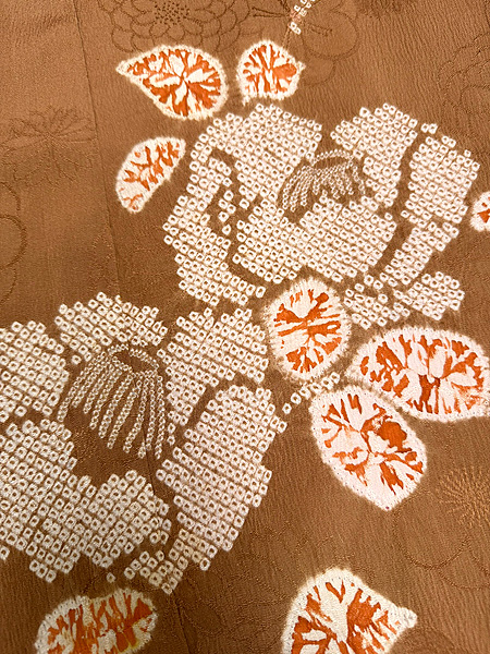 やわらかい生地に絞りや刺繍で立体的に描かれた柄は、決して派手ではないながらも華やか。