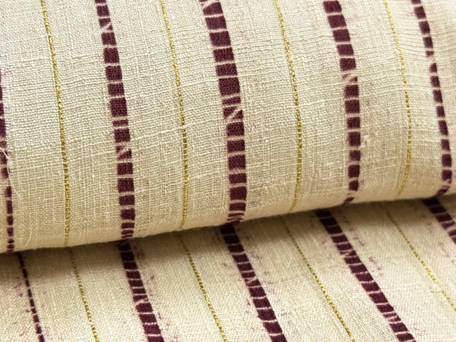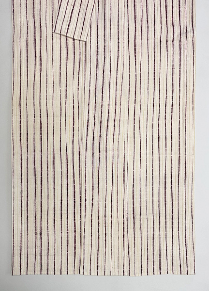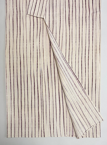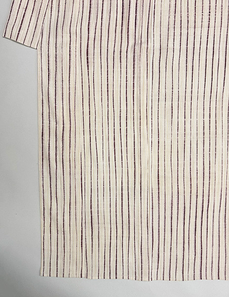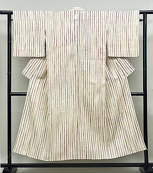 一筋の紫の線が縦に走って、スッキリと爽やかな単衣です。