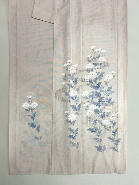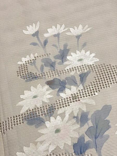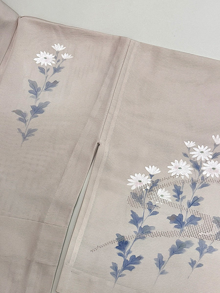 象牙色地菊文様絽付下 スワトウ刺繍入り 作家名あり