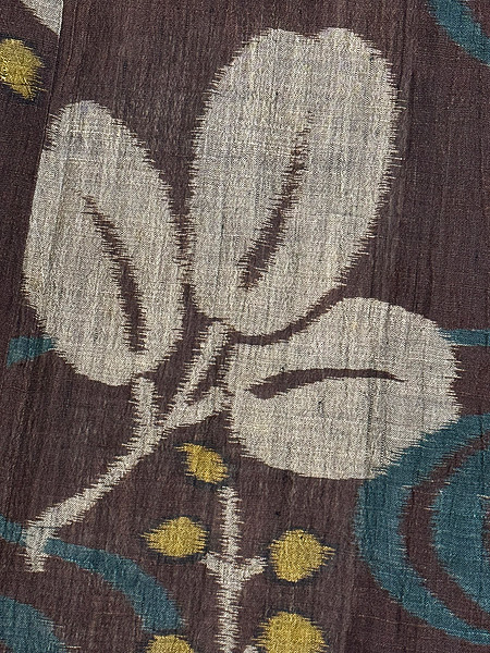 大きな文様がゆったりとして、昭和の着物スタイルを彷彿とさせてくれます。 太い糸がシャリっと爽やかで涼しげ、信頼できそうな着心地を約束しています。 丈は大きくなります。