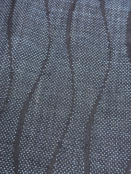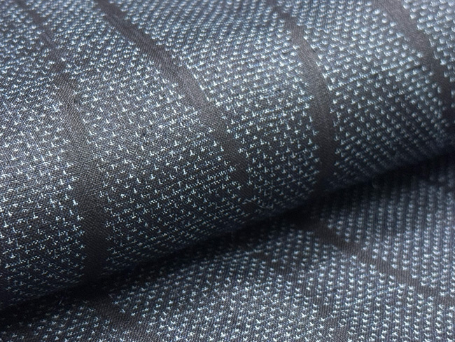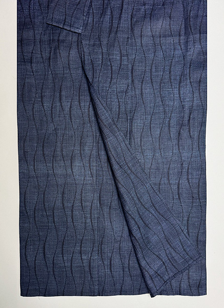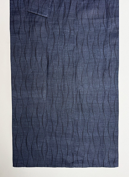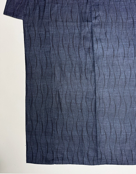 長い丈に立涌文が堂々と波打って、いかにも宮古上布にふさわしいデザインかと思われます。 しなやかで、砧打ちの艶感も程よく、夏のおしゃれの王道をお楽しみいただけます。