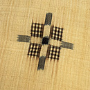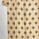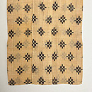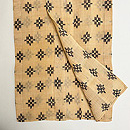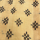 沖縄藍と車輪梅、ゆうなを使って3色の色を出していると思われます。 2つの幾何学文様を合わせて、民芸的で暖かく深みのある文様を織り出しています。 高度な染めと織りが重なった、喜恕嘉全盛期の創作か、と申し上げたいです。
