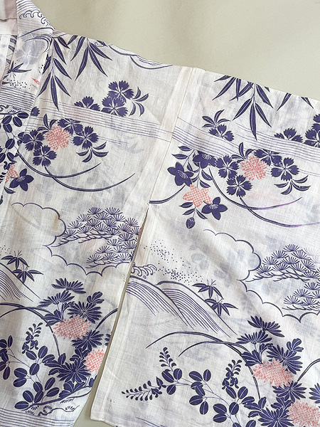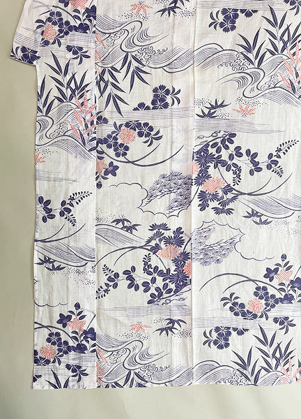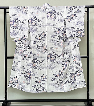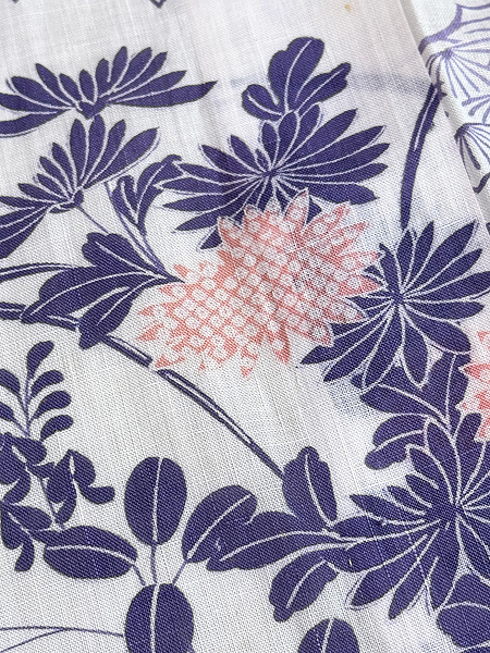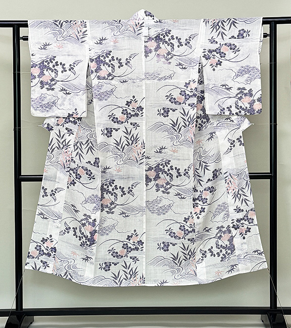 秋の花文様麻の染め着物 着物25-06-34 ご売約済 身丈:3尺9寸(約148.2cm) 裄:1尺6寸5分(約62.7cm) 袖丈:1尺4寸2分(約54cm) 袖巾:8寸3分(約31.5cm) 前巾:6寸(約22.8cm) 後巾:7寸7分(約29.3cm)