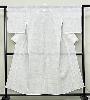 ややグレーがかった白地の蚊絣は古代越後上布。 どんな帯も映える夏の万能選手といえましょう。 夏帯を思い切りお楽しみ下さい。