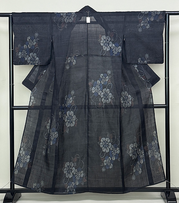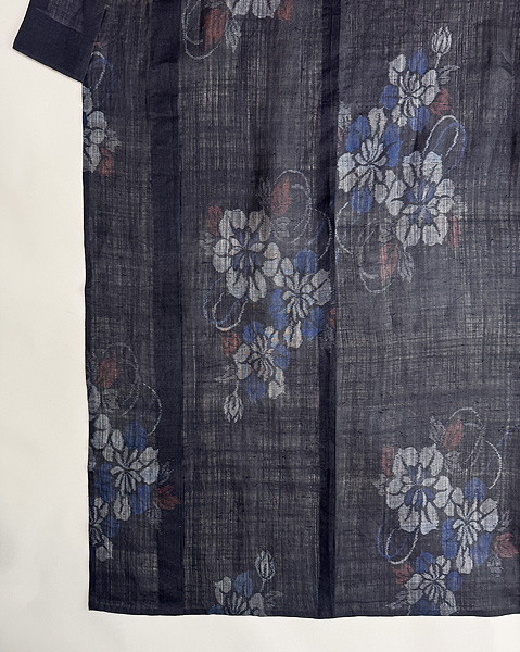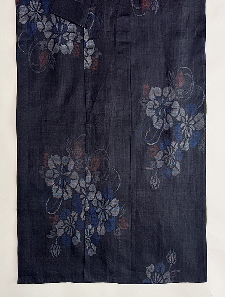 宮古上布の中でも、色絣は今では生産されてない貴重なもの。 赤、青糸を用いて大きな花柄が華やかで可愛らしい一着。 サイズもたっぷりです。
