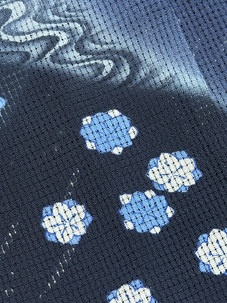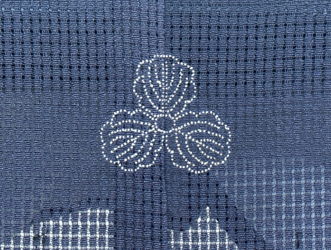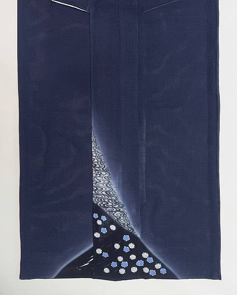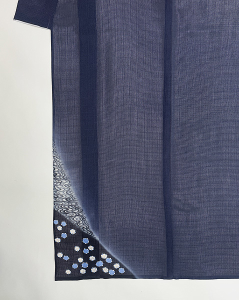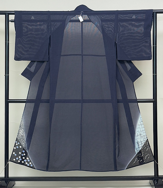 もじり織の濃紺の生地の透け感がとても涼しそうな訪問着です。
