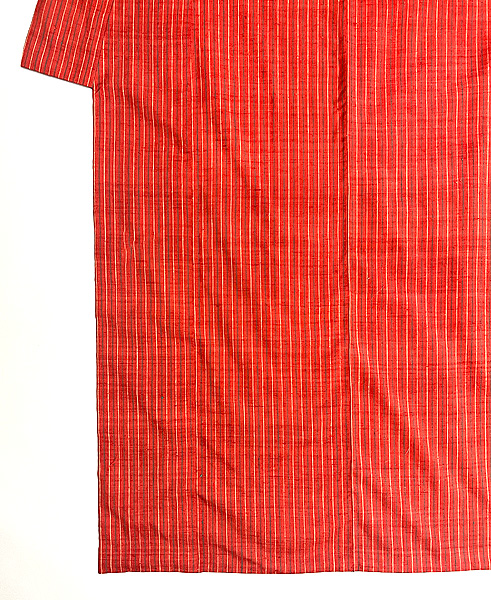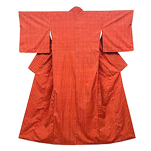 赤縞紬 「こうげい」作 着物23-11-42 ご売約済み 身丈:4尺8分(約155cm) 裄:1尺7寸5分(約66.5cm) 袖丈:1尺3寸(約49.4cm)売約済み 袖巾:9寸(約34.2cm) 前巾:6寸4分(約24.3cm) 後巾:7寸(約26.6cm)