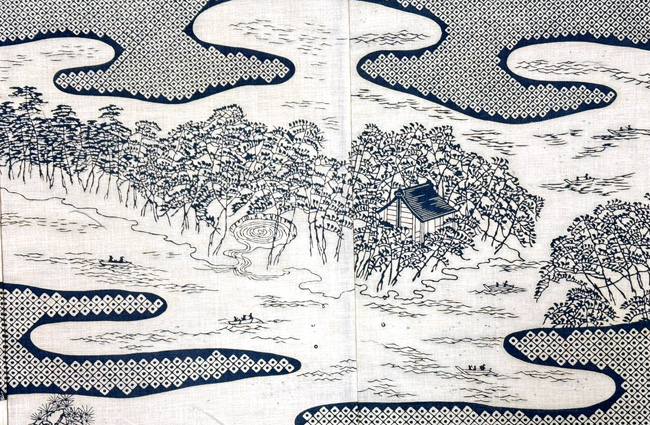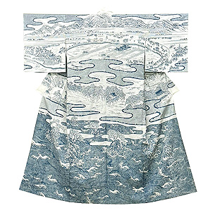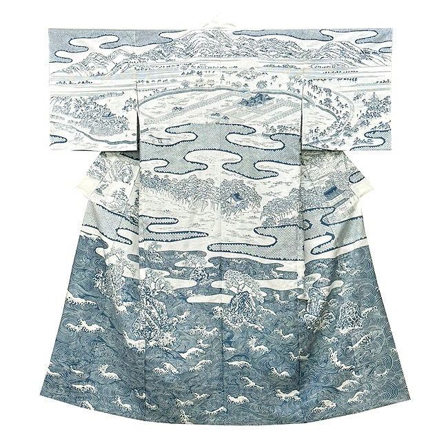 松原定吉作 日本三景の図訪問着(木綿) 松原着物-01 仮絵羽 お仕立て上がり ご売約済