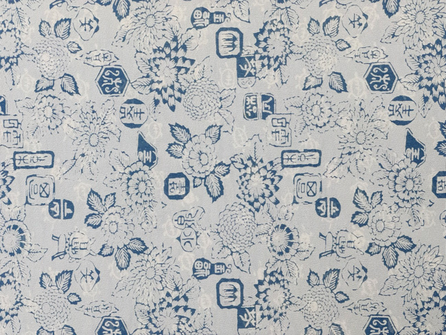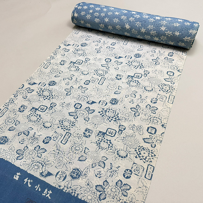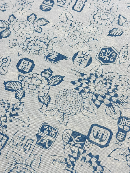 松原与七作 菊、ボタンに落款文(絹) 松原反物-26 お仕立て上がり ご売約済