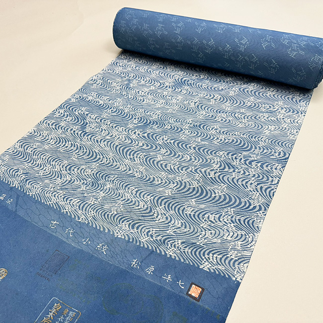 松原与七作 観世水に千鳥(絹) 松原反物-29 お仕立て上がり ご売約済