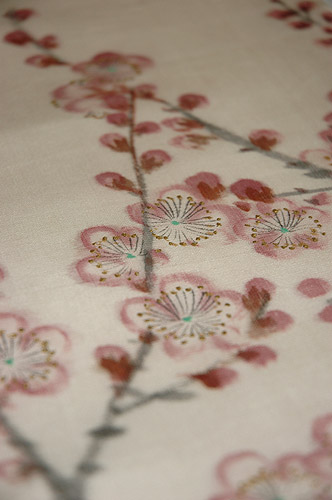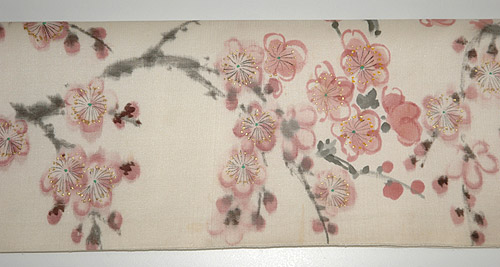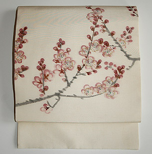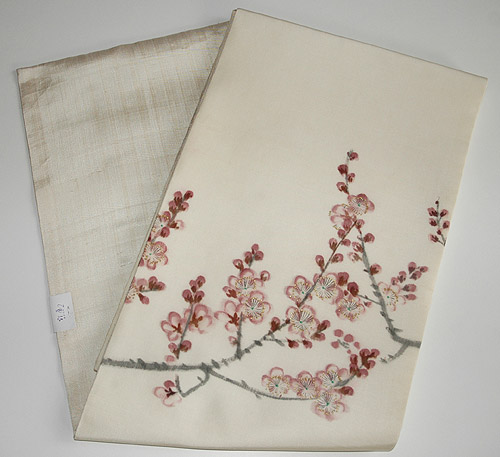 塩瀬地に梅が描かれた染め名古屋帯です。 新春の清々しさを感じ、お正月にお勧めの1枚です。
