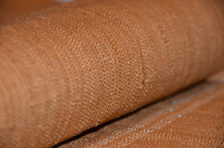 小麦色の柔らかな赤みの黄色が秋に相応しい帯です。