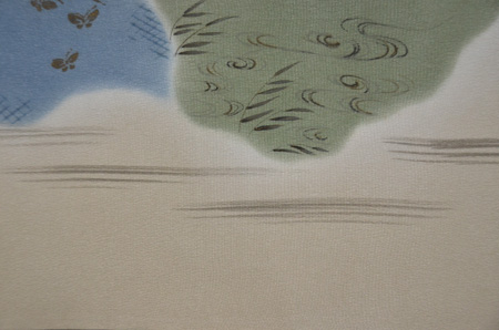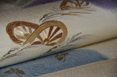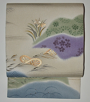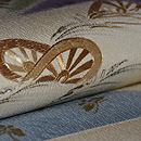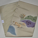 色目も図柄もいかにも優しい帯で、春遅くまでお使いいただけます。 ポイントに刺繍が入り、小紋にも紬にも合わせてお楽しみください。