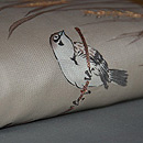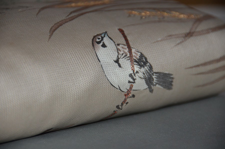 春草に雀の図名古屋帯 質感・風合 春草に雀の図名古屋帯 帯裏 春草に雀の図名古屋帯 前中心