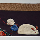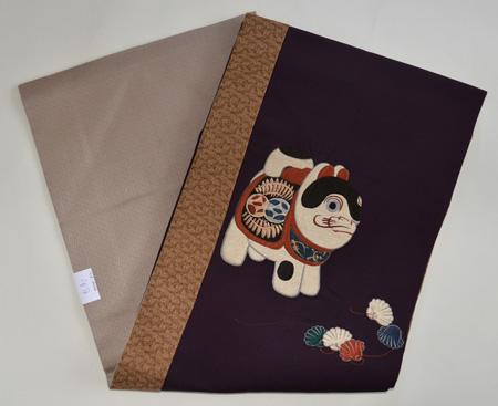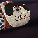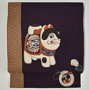 お太鼓に張り子の犬、前柄に張り子の馬と雪うさぎの刺繍がされています。 丸帯の生地を接いだ事によって、より豪華な帯になりました。