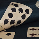 面白柄でも人気のあるトランプ柄。 灯屋2の面白柄の帯でも特に人気があります。 今回は状態の良い所を使用し、別布をはぎ合わせて名古屋帯にお仕立てしました。 トランプのマークも丸身をおび、少し大きめに描かれていて愛らしい柄になっています。