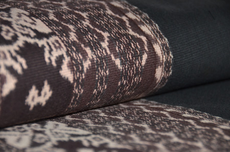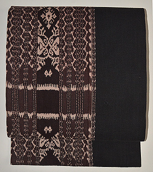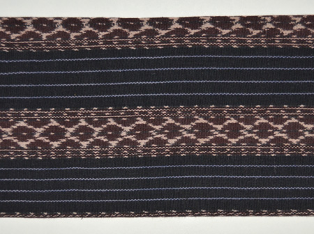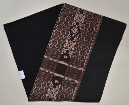 墨黒地蝶々絣文様木綿地名古屋帯 質感・風合 墨黒地蝶々絣文様木綿地名古屋帯 帯裏 墨黒地蝶々絣文様木綿地名古屋帯 前中心
