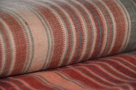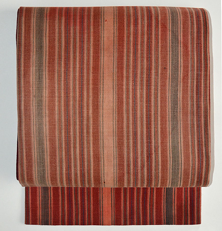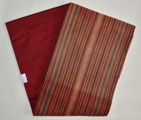 茜色縦縞木綿地名古屋帯 質感・風合 茜色縦縞木綿地名古屋帯 帯裏 茜色縦縞木綿地名古屋帯 前中心