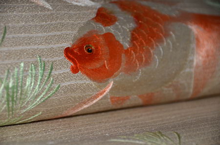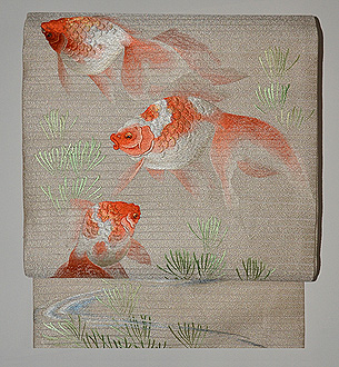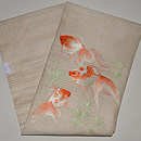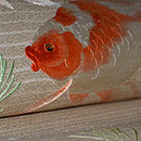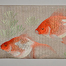 誰からも愛される夏の風物詩、金魚の帯。 非常に繊細かつ上品な刺繍に目を見張ります。 絹糸をグラデーションで刺すことにより生まれる、自然で優しい姿の金魚。 水中を優雅に泳いでいる様子を再現した、技術の高い手刺繍。金魚がモチーフとなった帯はたまに見かけますが、ここまで繊細な刺繍は珍しいと思います。 アンティークのものですが、状態が非常によく、すぐにお使いいただけるお勧めの夏帯です。