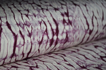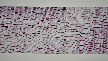 紫布の根から取り、染める紫紺染です。その草も入手が難しくなりました。 草木染だからこそ、美しいいにしえ色。 白場が多い紬地の絞りですので、暑さの残る単衣時期にも涼やかに明るくみえます。