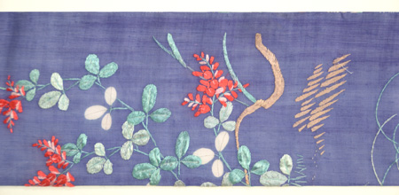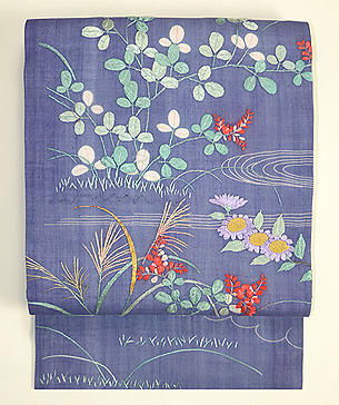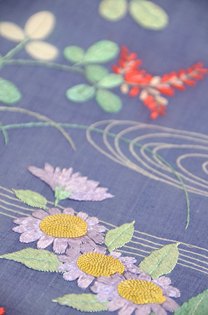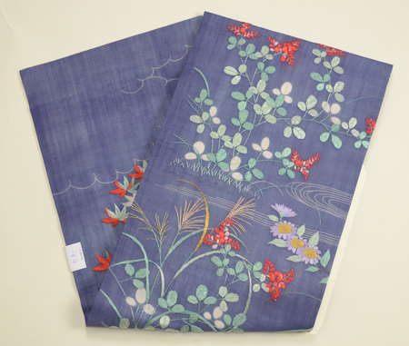秋草が刺された明治初期の夏衣裳を帯にしました。