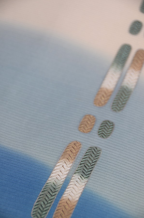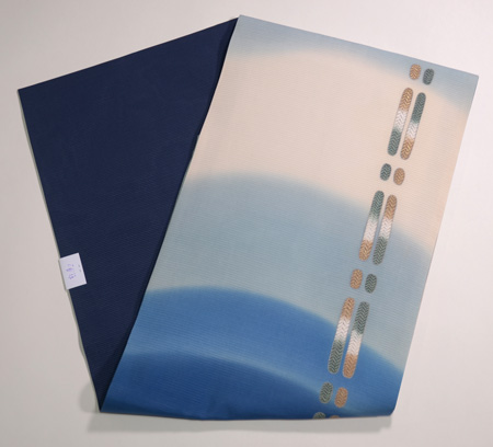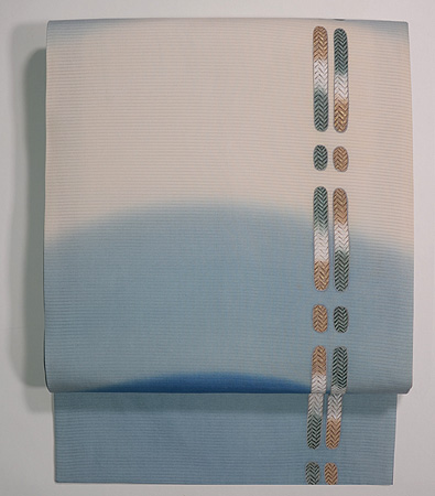 珍しい図柄のスッキリとした涼やかな帯です。 御簾の向こうは霞たなびく遠山でしょうか。 たっぷりと秋草茂るお着物がお似合いですね。