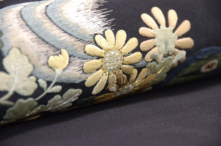 真鴨刺繍丸帯 帯裏 真鴨刺繍丸帯 前中心 真鴨刺繍丸帯 質感・風合