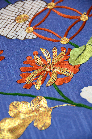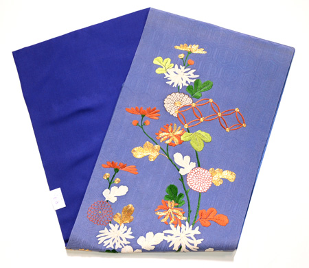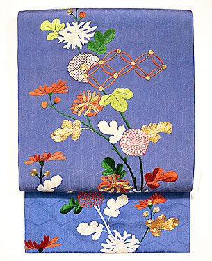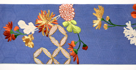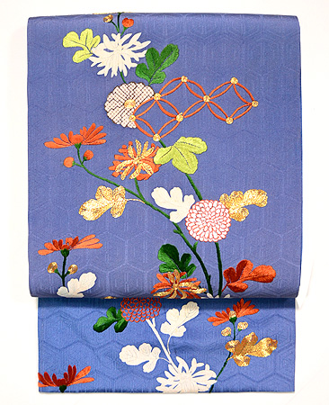 菊枝に七宝繋ぎの刺繍名古屋帯