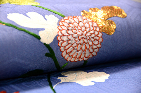 大きな亀甲の地紋に立ち上がる菊枝の様子、朱色の七宝繋ぎと、さぞかし格調あるお着物、あるいは打掛だったのでしょう。