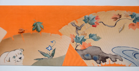 前柄にはワンチャンもいます。 帯16-10-37とは双子の帯になります。 こちらは秋限定の楽しい帯です。