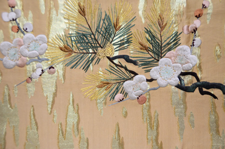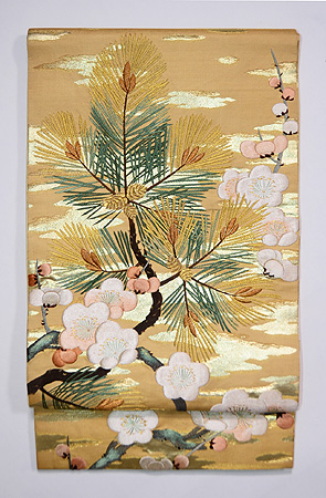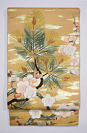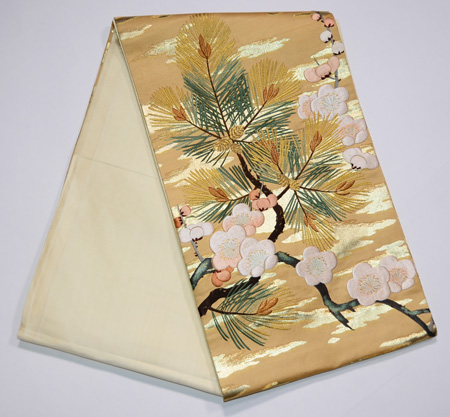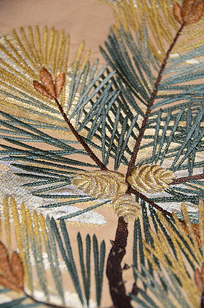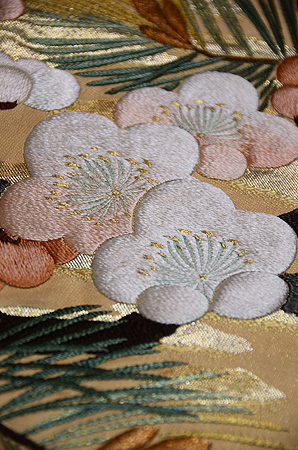 刺繍がこんもりと、そしてはんなりとして、アンティークの良さ全開の帯です。 お正月のお着物には、帯だけでもこのように刺繍のすばらしい昔ものをお使いになってみたら、いかがでしょうか。