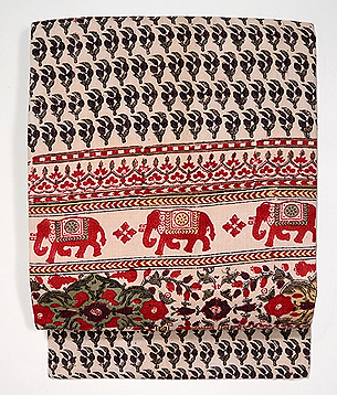鬼手と言われるざっくりとした木綿地に、媒染染めの茜色が美しい帯です。 酸性とアルカリ性の媒染液によって、茜染めが魔法のように色々な色を発色させて、しかも、堅牢度も100%に近いと言われるインド更紗は、まさしく染めの王者と言われています。 希少性も増しています。この機会にいかがですか。