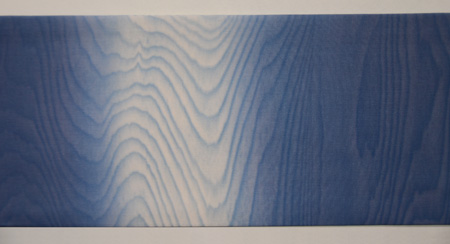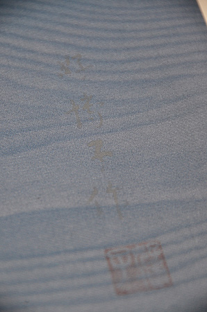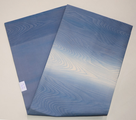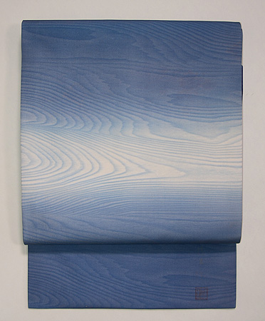 好博士は自然の造形から美を発見して、現代的な感覚の文様を創作しています。 この帯の引き込まれそうに深い水色は、これからの季節をお楽しみになるうえで、ふさわしい帯といえます。 杢目の白い部分に春の光さえ感じられます。
