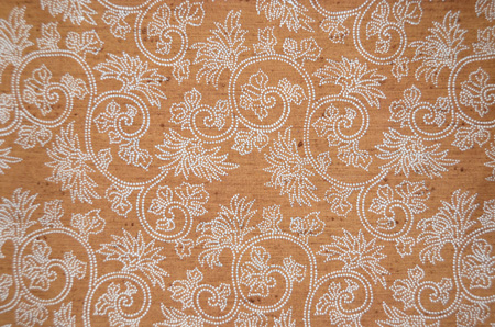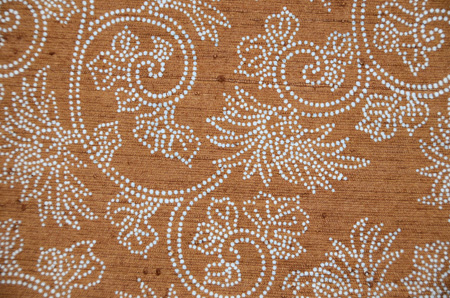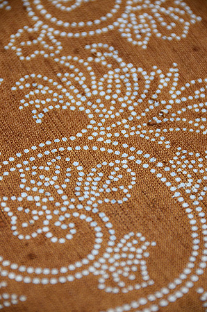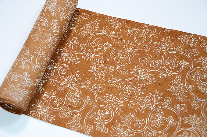錐(きり)小紋の型紙で糊置きされた、繊細で優しい唐草文様の名古屋帯です。