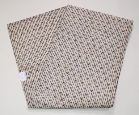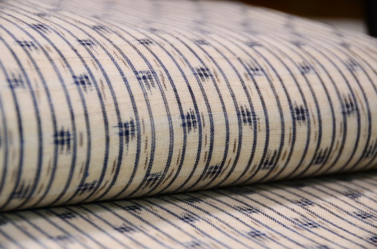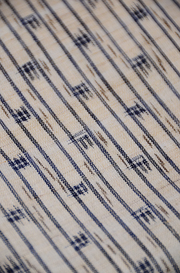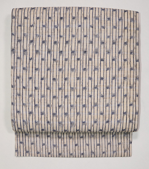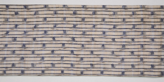 麻の地色に、深い藍色とこげ茶がしっくりと収まって、とても味わい深い帯になりました。 上布の中では糸も太いので、帯にはふさわしいのかなと、今回実感しました。