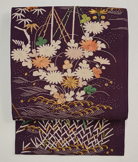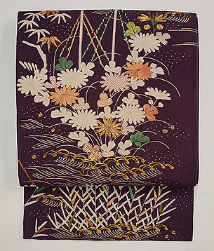 紫地江戸解き文様名古屋帯