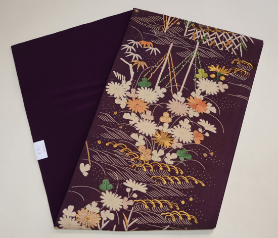 紫地江戸解き文様名古屋帯 帯裏 紫地江戸解き文様名古屋帯 前柄 紫地江戸解き文様名古屋帯 質感・風合