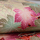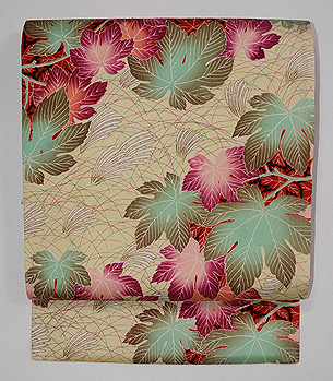 縮緬地紅モミジの名古屋帯