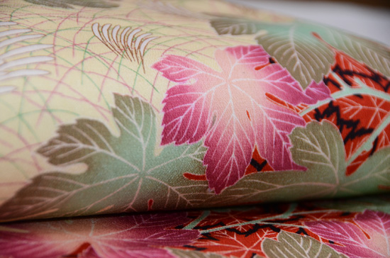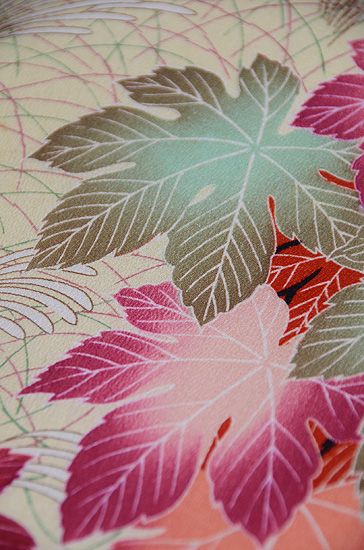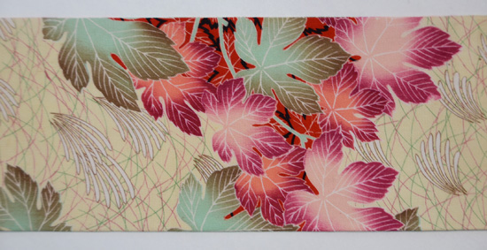 縮緬地紅モミジの名古屋帯 質感・風合