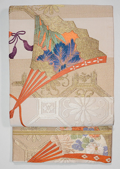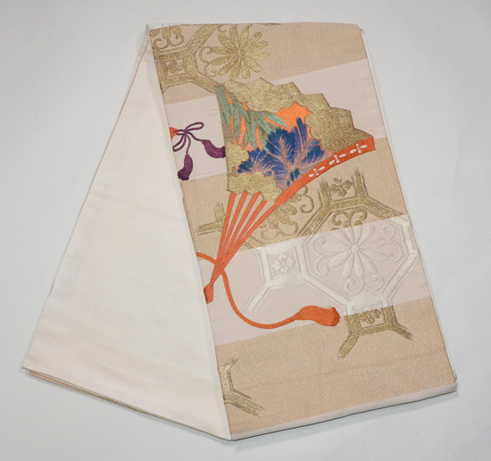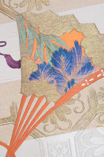 檜扇と地紙の刺繍綴れ袋帯 ご売約済 帯18-12-06