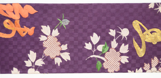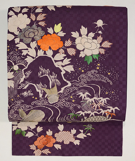 紫地市松地紋鯉と牡丹江戸裂名古屋帯 ご売約済 帯18-2-9