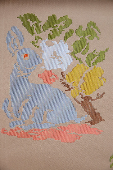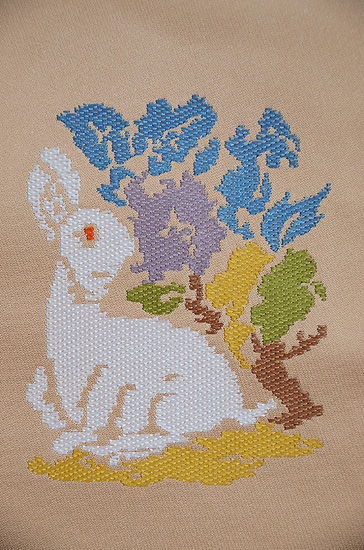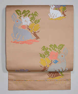 中国から渡来した名物裂のひとつで、角倉了以という桃山期の茶人が愛用していた所から命名されました。 木の下で後ろを振り向く兎、、その丸いドームのような形が作り土といわれています。 未使用品ですが、保存状態が少し悪かったようです。 店頭でご確認ください。