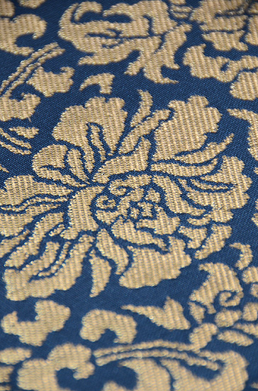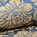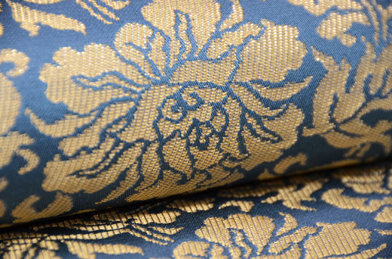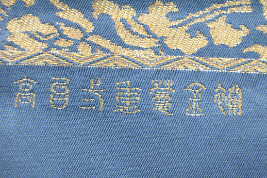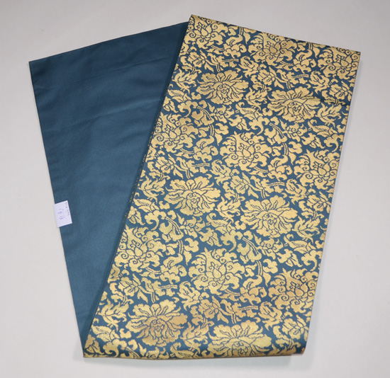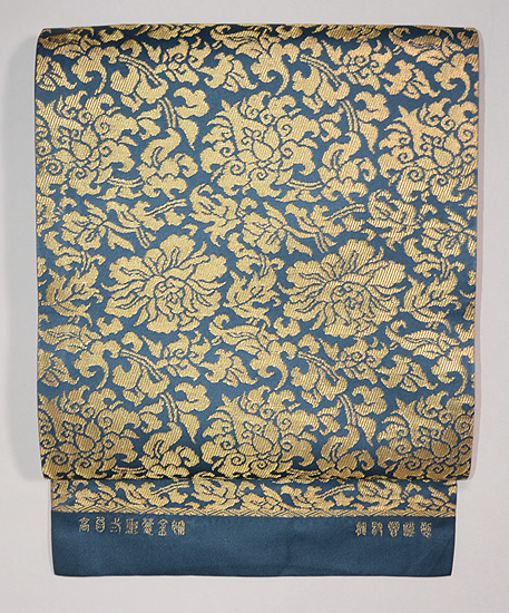 この文様は、京都高台寺の戸張帳に使われているため、高台寺金蘭とも呼ばれています。 透明感ある青磁色に、金糸の織りこみが荘厳なまでに美しく、香華な香りに満ちています。 お着物の品格を、ぐっと高めてくれることでしょう。